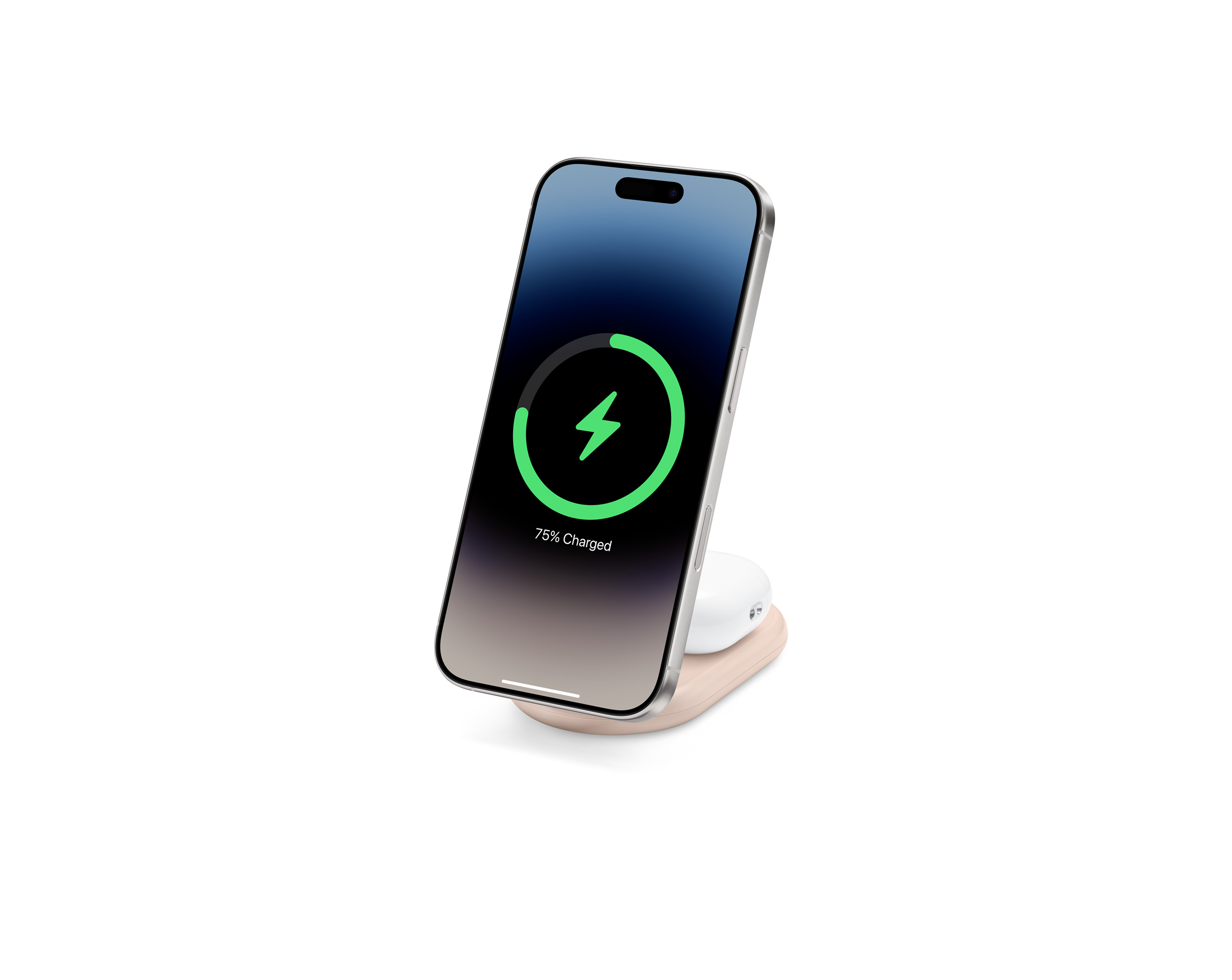 The Belkin BoostCharge 2-in-1 Magnetic Foldable Charger lets you enjoy fast wireless charging for your MagSafe-compatible iPhone, while simultaneously charging your AirPods with our ultra-convenient foldable charging stand. Leveraging Qi2 technology, the charging pad offers a secure, aligned, magnetic connection for up to 15W for iPhone in a super-compact profile.